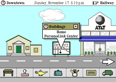Con questo approccio è possibile intuire facilmente le funzioni di base del software, ma il rovescio della medaglia è che, dopo aver capito la sua funzione, la metafora diventa ridondante. È necessario tornare indietro in strada per configurare un altro servizio. Devi ad esempio tornare nel corridoio e poi nella sala giochi per giocare a Solitario. Questo può essere normale nel mondo fisico, ma non è necessario del mondo del software.