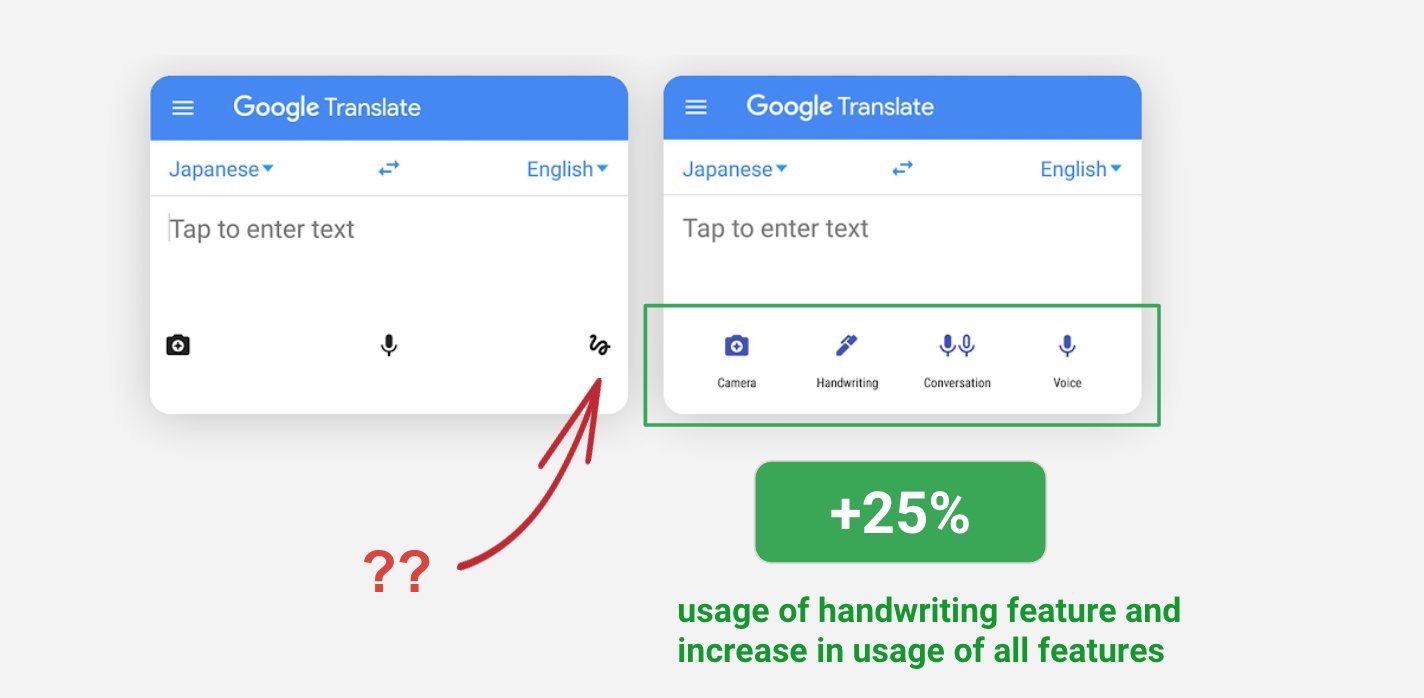 Di recente Google ha cambiato l’icona che rappresentava l’azione della scrittura a mano, incrementando del 25% l’utilizzo.